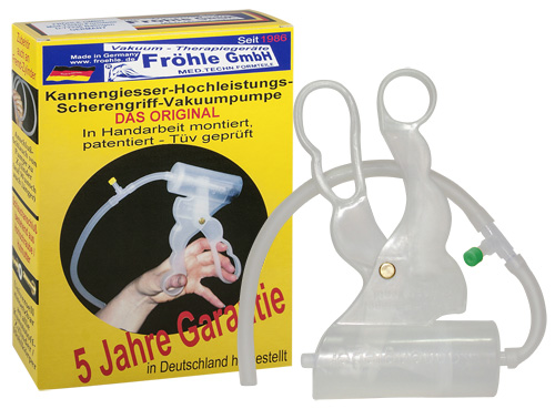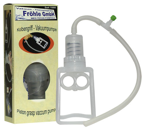 Zubehörartikel für Pumpenartikel von Fröhle. Hochleistungs-Scherengriff-Vakuumpumpe - das Original für die erfolgreiche Anwendung der Vakuum-Therapie. Sie bringt ca. 800 Mbar Unterdruck - auch unter der Dusche. Medizinisch-technisch geprüft und vom Patentamt geschützt.
