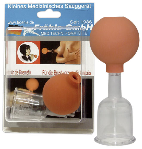 Transparenter Saugzylinder mit Pumpball. Zylinder-Ø 4 cm. Top-Qualität von Fröhle made in Germany. Material: ABS.