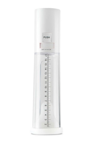 Eichel in den transparenten Pump-Zylinder einführen, sie wird von der dehnbaren Manschette fest umschlossen. Dann über das Display mit Touch-Buttons das erregende Vakuum erzeugen. Du kannst quasi zusehen, wie Deine Eichel praller, größer und empfindlicher wird.