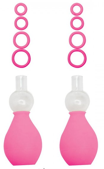 Nippelpumpe in Pink mit 4x2 unterschiedlich großen Brutzwarzenringen.