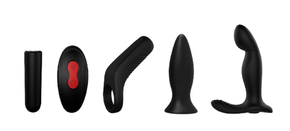 Inklusive Penisring mit Kitzler, Analplug und Prostatamassagegerät.
