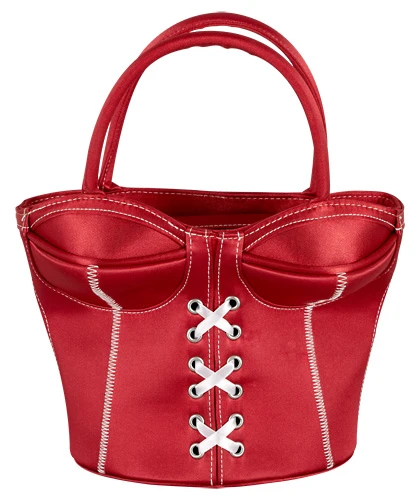 Für die trendige Frau! Handtasche in Form eines Korsetts mit Bügelgriffen, schwarzen Nähten und Schnüroptik in der Front. Mit kleiner Innentasche. Tasche und Innentasche mit Reissverschluss zu schliessen.