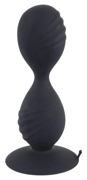 Biegsamer Plug im Reizwellen-Design mit Rückholring. Schwarz. 19 cm lang,