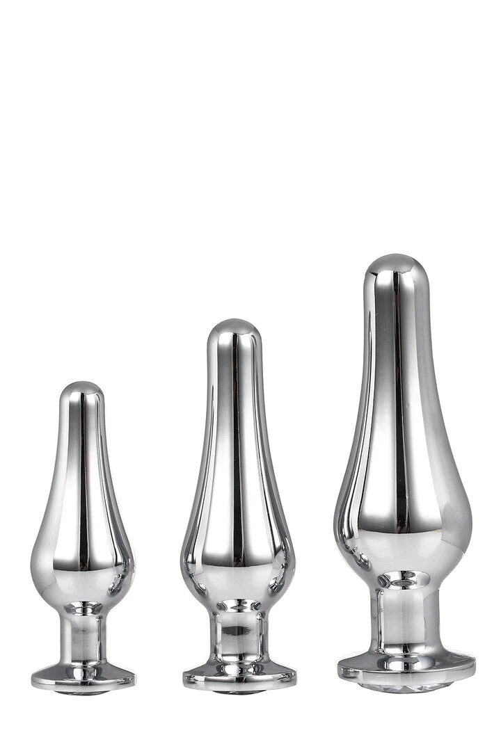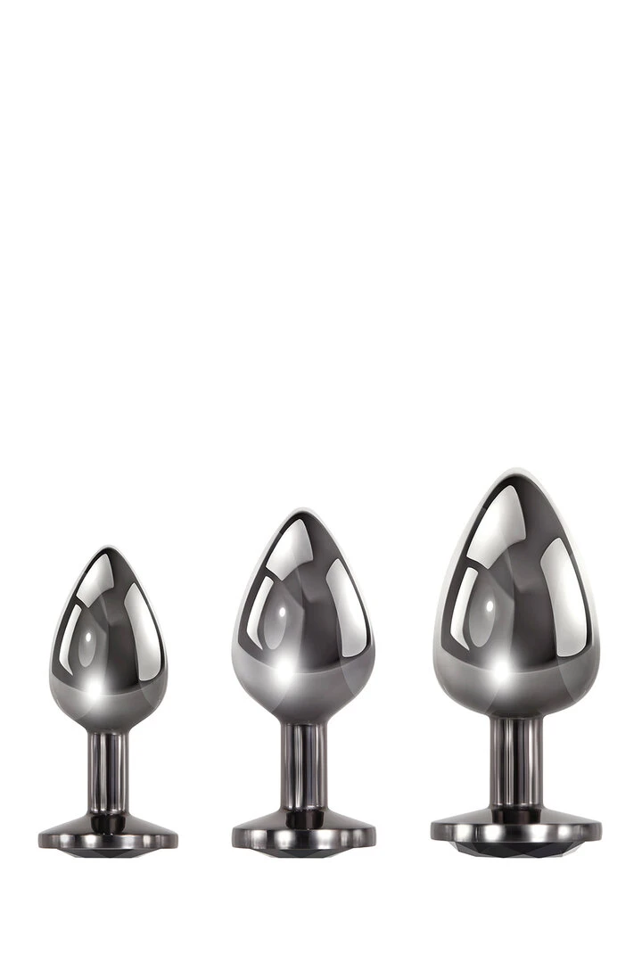 Die Gleaming Love-Kollektion präsentiert dieses Set aus konisch geformten und glänzenden Analplugs mit einem Edelstein in der Basis. Diese aus glattem, leichtem Aluminium gefertigten und nahtlosen Lustspielzeuge lassen sich leicht gleiten und die zunehmende Breite sorgt garantiert für Vergnügen. Die ausgestellte Basis sorgt für ein Gefühl der Sicherheit und sorgt gleichzeitig dafür, dass das Schmuckstück bequem zwischen den Pobacken sitzt.