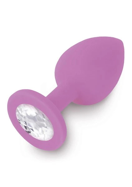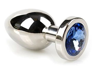 Analplug aus poliertem Edelstahl. Kommt in 3 verschiedenen Größen. An der Stirnseite mit einem Glasstein in verschiedenen Farben.