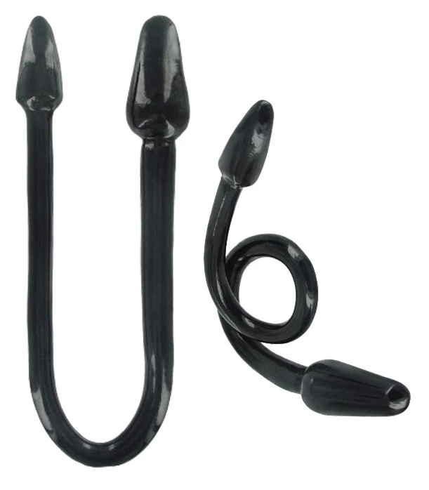 Beide Enden dieses Sexspielzeugs haben unterschiedliche Zwecke: Auf der einen Seite befindet sich ein halbrealistisch gestalteter Dildo und auf der anderen Seite ein Analplug.