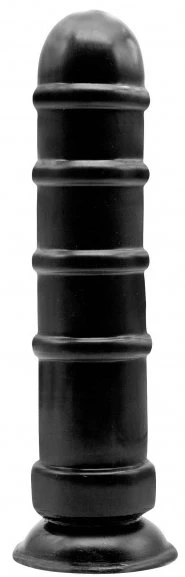 Dieser spezielle All Black-Dildo hat eine breite Unterseite, die nach oben hin schmaler wird, und jede Schicht hat eine spezielle Rille für zusätzliche Stimulation.