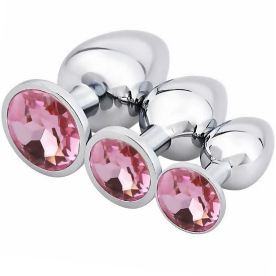 Dieses umwerfende Trainerset enthält drei verchromte Plugs in abgestuften Größen, die für müheloses Eindringen geformt sind. Ideal für das Training allein oder mit einem Partner, sie sind körpersicher und haben einen wunderschönen herzförmigen Edelstein in der Basis. Geeignet für alle Gleitmittel.