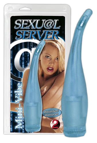Anal-Vibrator mit schmaler, beweglicher Spitze. Blau-transparent. Gesamtlänge ca. 18,5 cm, Ø 1 cm3 cm. Stufenlos regelbar. Material: PVC