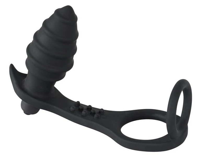 Doppelring mit Anal-Vibrator. Schwarz. Gesamtlänge ca. 14 cm.
