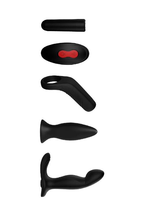 Inklusive Penisring mit Kitzler, Analplug und Prostatamassagegerät.