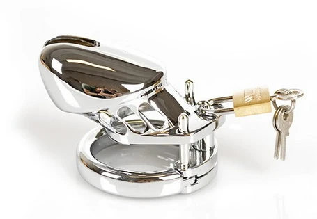 Penis-Käfig aus Metall. Mit einem Schloss abschließbar. Damit ihr liebster nicht auf dumme Gedanken kommt.