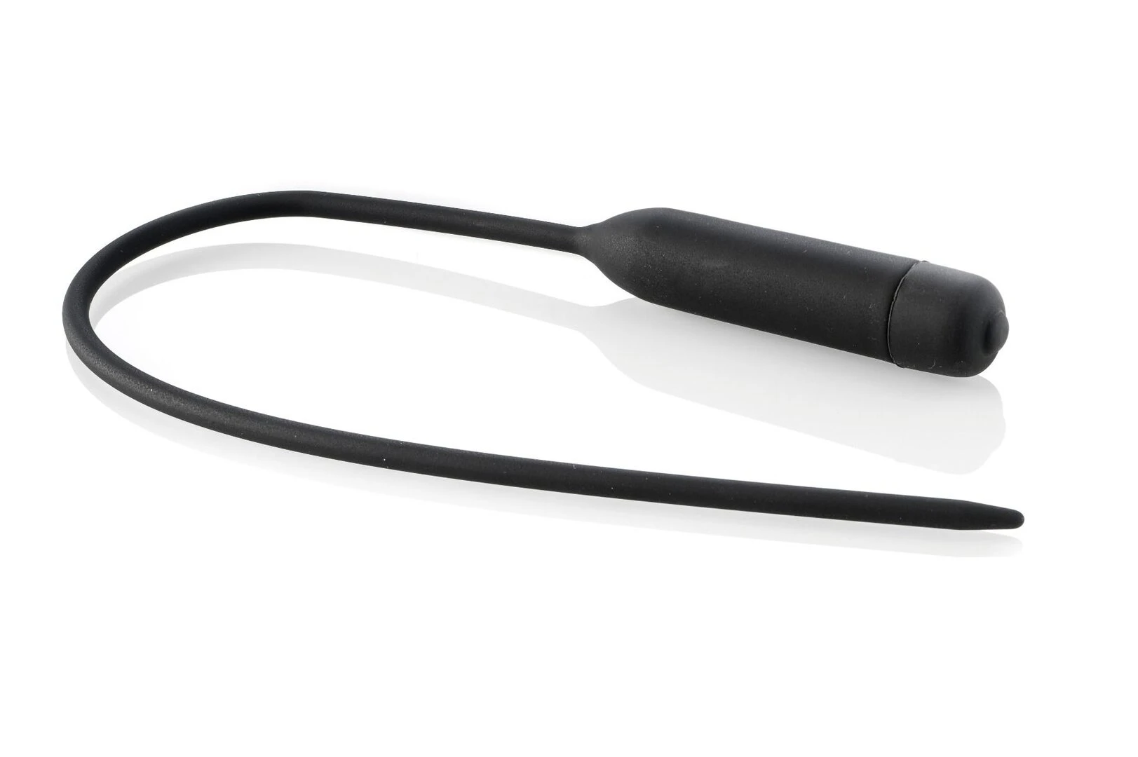 Der schwarze Dilator-Vibrator wird behutsam in die Harnröhre eingeführt und stimuliert dort mit seinen 7 Vibrationsmodi per Knopfdruck. Gesamtlänge ca. 19 cm, Stablänge 10,5 cm, Ø ca. 8 mm. Nahtlos gefertigt für leichtes Einführen Material: Silikon, ABS, phthalatfrei gemäß EU-Verordnung 1907/2006/EC. Inklusive Knopfzellenbatterien.