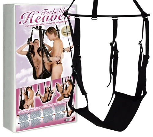 Liebesschaukel für lustvolle Sexstellungen. Matte 88 x 60 cm groß, 100% Polyester. Gurte, Hand- und Fußschlaufen aus reißfestem Nylon, längenverstellbar. Ohne Montage-Zubehör. Schwarz. Belastbar bis 120 kg.