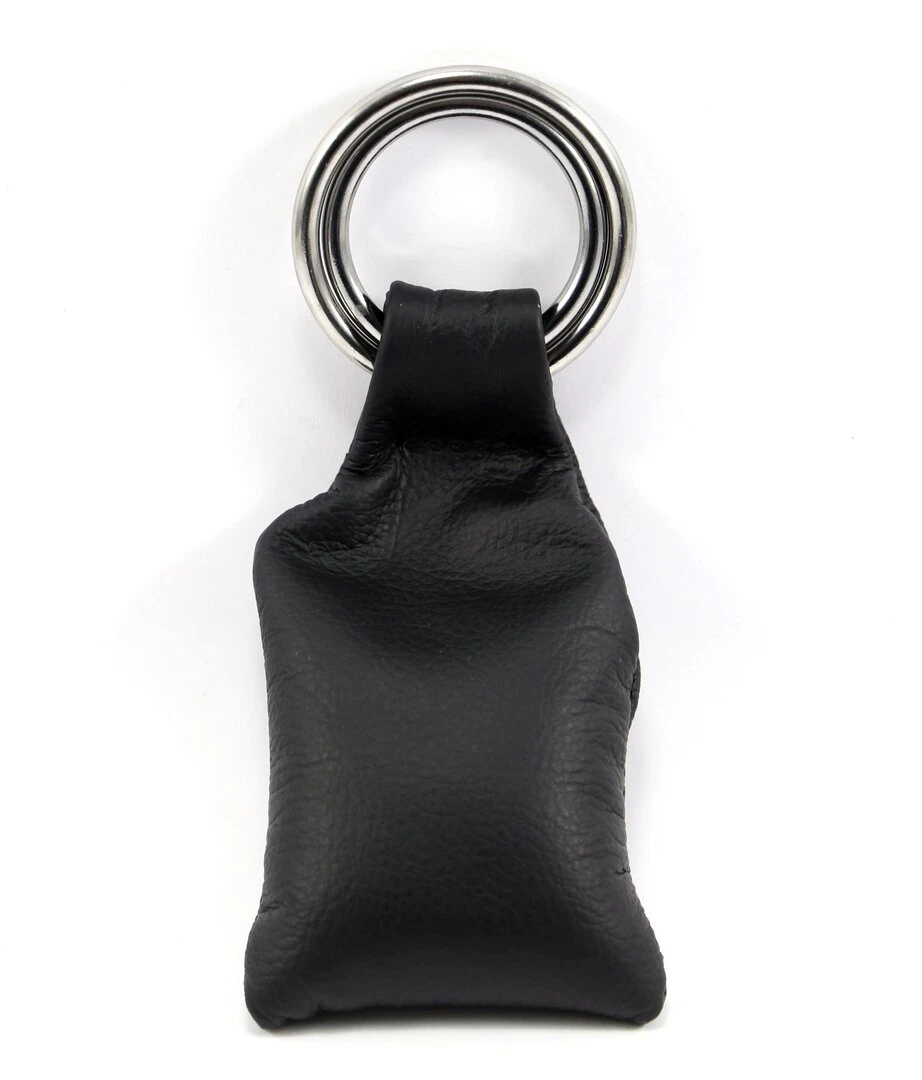 Gewicht aus weichem Leder (gefüllt mit Bleikugeln ca. 250 g) und integriertem Penis-/Hodenring (Ø ca. 50 mm).