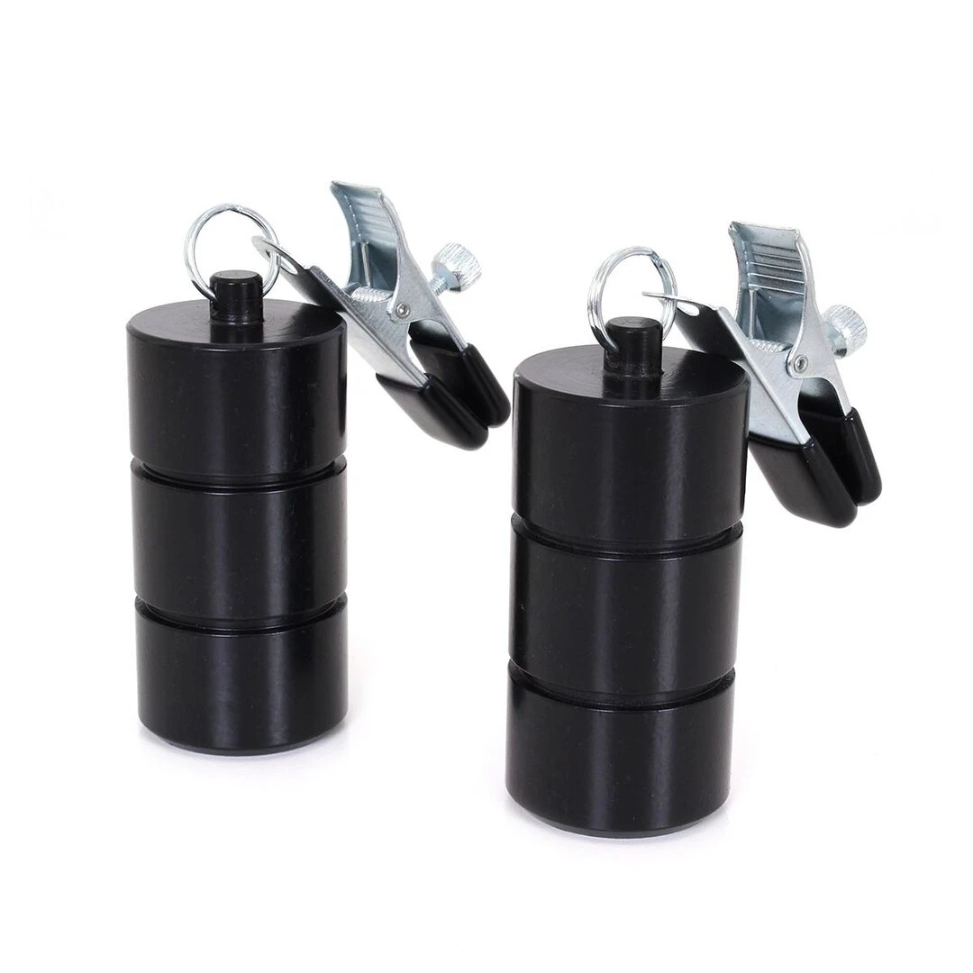 Erleben Sie die wunderbare Kombination aus Lust und Schmerz, indem Sie die Brustwarzenklemmen mit einem Gewicht an den Brustwarzen befestigen.