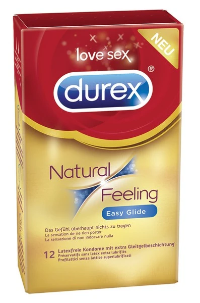 Durex Natural Feeling Kondome aus Real Feel Material für das Gefühl überhaupt nichts zu tragen! Hergestellt aus latexfreiem Polyisopren, klinisch getestet. Easy-On Passform und Reservoir, transparent und befeuchtet Nominale Breite: 56 mm