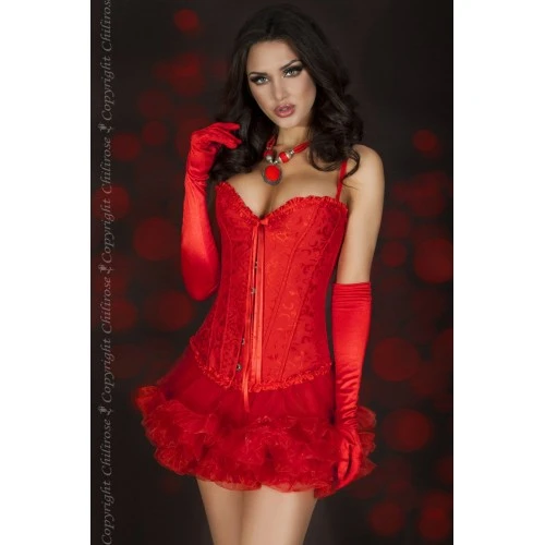 Eine göttliche Kombination aus einem roten, hochwertigen Korsett mit dem passenden String (Hinterteil in Form eines unsichtbaren Bändchens). Das leicht glänzende Material hat ein subtiles, florales Muster. Das Korsett wird vorne bequem über Haken verschlossen und zusätzlich auf der Rückseite geschnürt, um die beste Formung der Figur zu erzielen.
