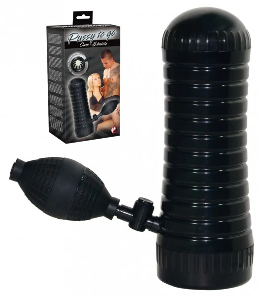 Masturbator mit Pumpfunktion. Schwarz. Außen Hartplastik, innen genopptes TPE. Länge: 20,5 cm. 20 cm innen. Innendurchmesser 3,1 cm unaufgepumpt, aufgepumpt total eng bis komplett zu. Ohne Vibration.