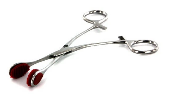 Medische Pierzingzange mit herausnehmbare Gummiteile. Wird auch als Nippelklammer verwendet.