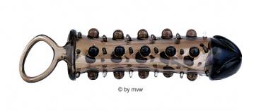 Penishülle mit starker Äderung und fest ausgepolsterter Eichel, die den Penis um 2,5 cm verlängert. Verdickt den Penis um 33% und sorgt gleichzeitig für Erektionsunterstützung. Kann individuell angepasst werden.