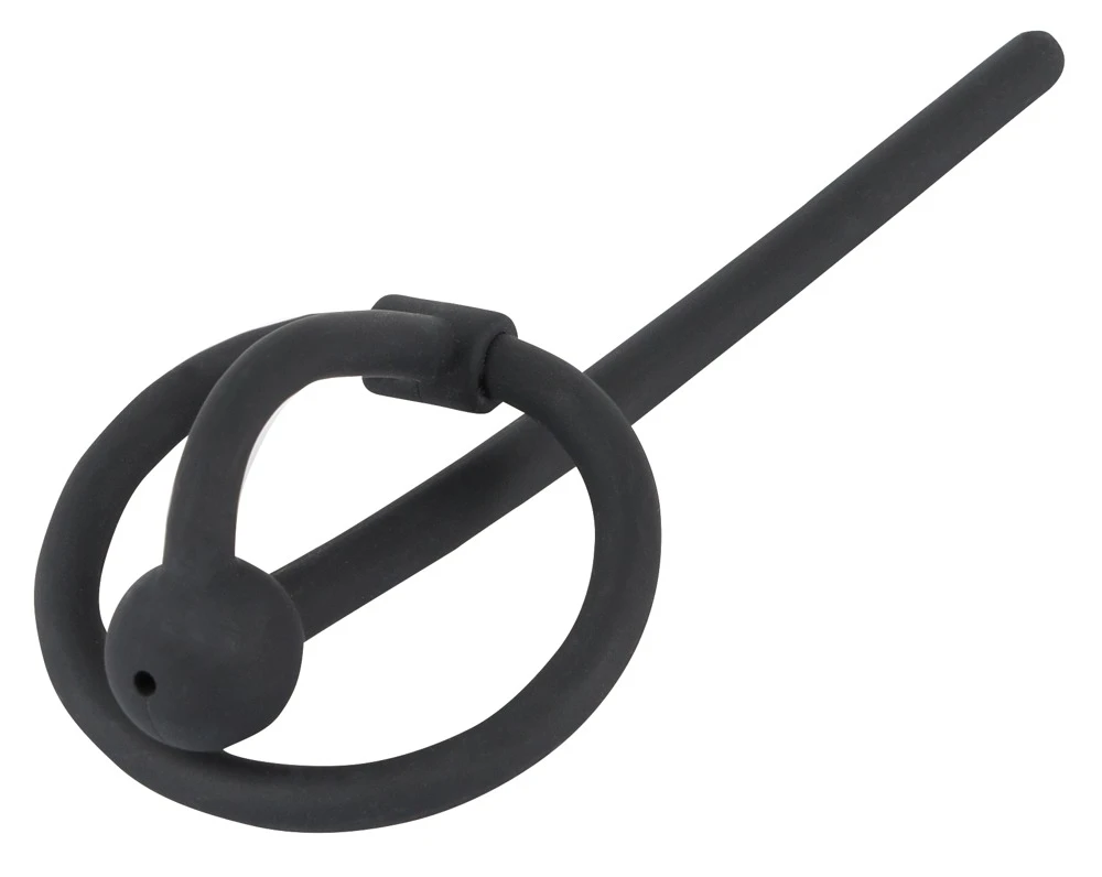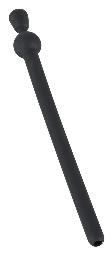 Flexibler Dilator mit Stopper zum Verschließen. Innen hohl zum Urinieren und Ejakulieren. Gesamtlänge 12 cm, Einführtiefe 10,7 cm, Ø 0,7 cm. Silikon.