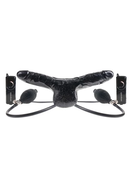 Das Fetish Fantasy Vibrating Strap-On ist ein aufpumpbarer Vibrator mit Dildo-Geschirr. Der Vibrator in Penisform besitzt eine Fernsteuerung die am Gürtel befestigt werden kann. Aufgeblasen wird er mit dem medizinischen Handpumpball. Dieser vielseitige Penis ist ganz schnell aufgepumpt. Geschwindigkeit der Vibration an der Fernbedienung wählen und die Schwingungen genießen. Das bequeme Trapez dehnt sich aus und passt sich den meisten Größen an. Der Luftdruck ist schnell mit Ablass-Ventil heraus gelassen. Die Reinigung ist leicht.