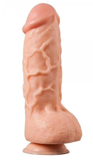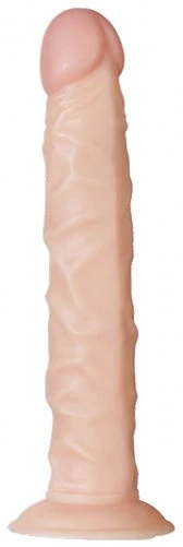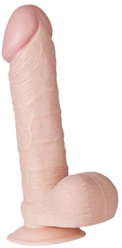 Hautfarbener Dildo mit praller Eichel, ausgeprägter Äderung und Saugfuß. Länge 18 cm, Einführtiefe ca. 16 cm. Ø 2,3-2,8 cm. Material: PVC,