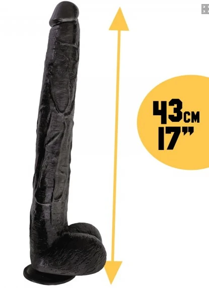 Sie lieben Übertreibungen? Wir auch! Dieser Riesendildo ist eine echte Herausforderung und nur etwas für ganz Mutige – Ein XXXXL Prachtkerl wie Sie ihn noch zuvor gesehen haben. Sie werden wohl beide Hände brauchen um das Monsterteil zu umfassen. Der Dildo besitzt eine ausgesprochen starke Äderung, eine realistisch geformte Eichel sowie einen großen Hodensack. Der Saug-Fuß ist extrem stark und hält fast überall und das sogar fast besser als der beste Alleskleber. Dadurch kann das Ding auch im Harness-Gürtel benutzt werden. Der Black Baller wird wohl überall ankommen. Maximalste Penetration oder auch lesbische Spiele sind anstrengend aber mit Sicherheit machbar. Egal was Sie vorhaben, der gewaltige Black Baller wird Sie nicht enttäuschen! Er ist der König unter den Realistic Cock`s… Und so schnell wird ihn wohl niemand von seinem enormen Thron stoßen!